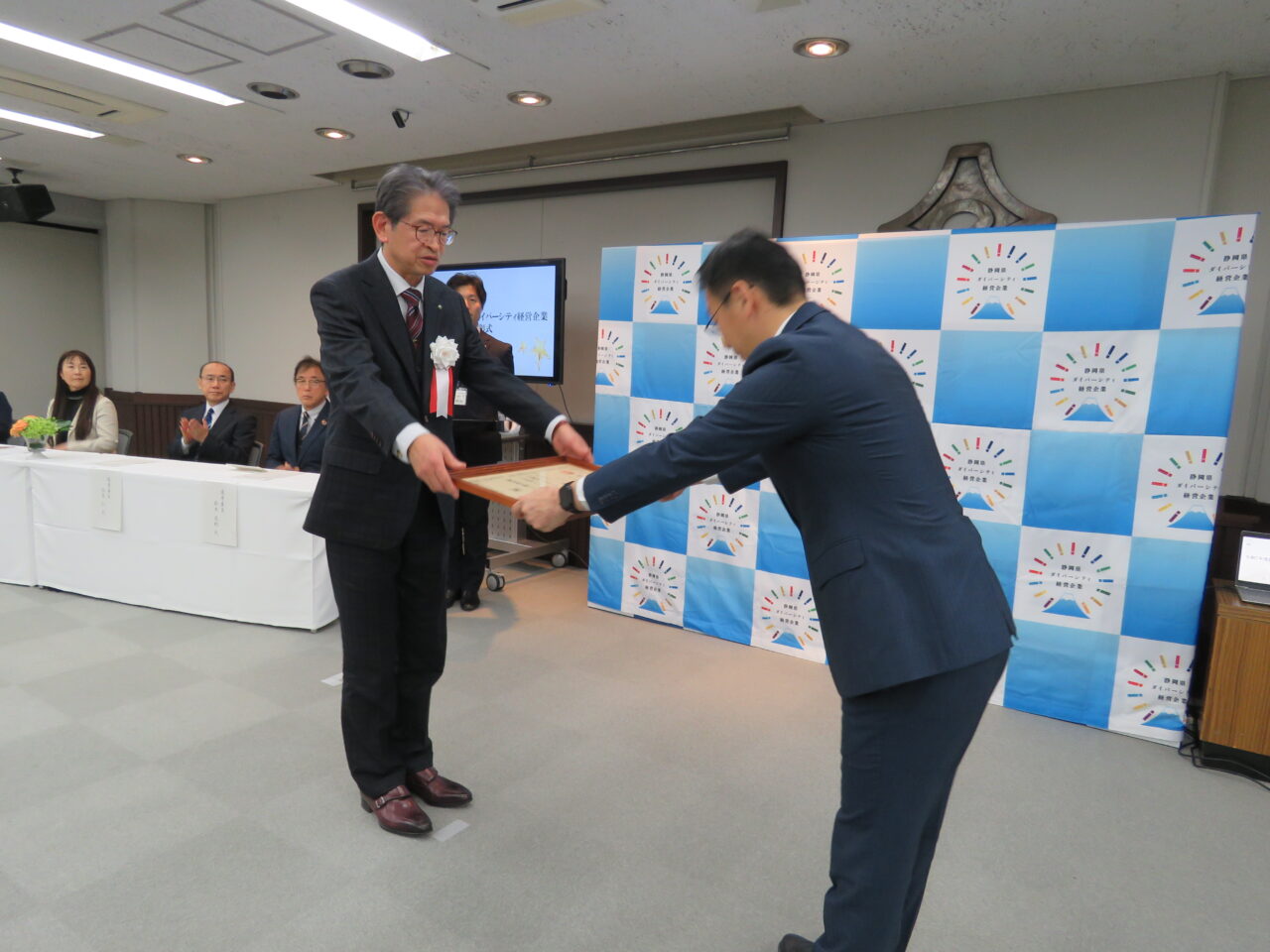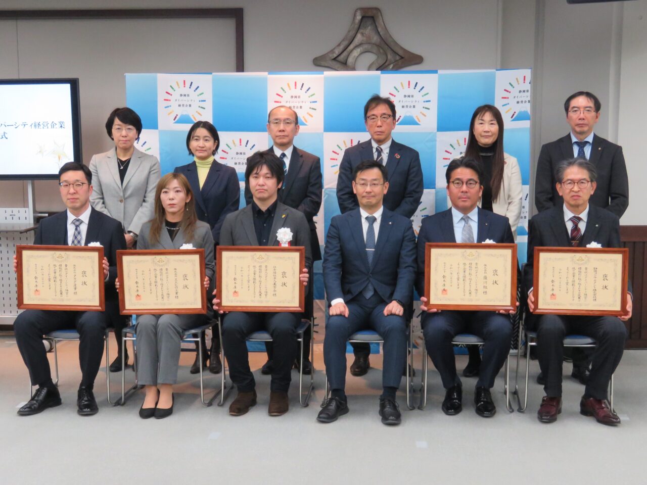 2026年1月30日に静岡県庁にて開催された表彰式では、二村代表取締役社長が知事より表彰状を受け取り、当社社員がダイバーシティ経営の取り組み事例について発表を行いました。